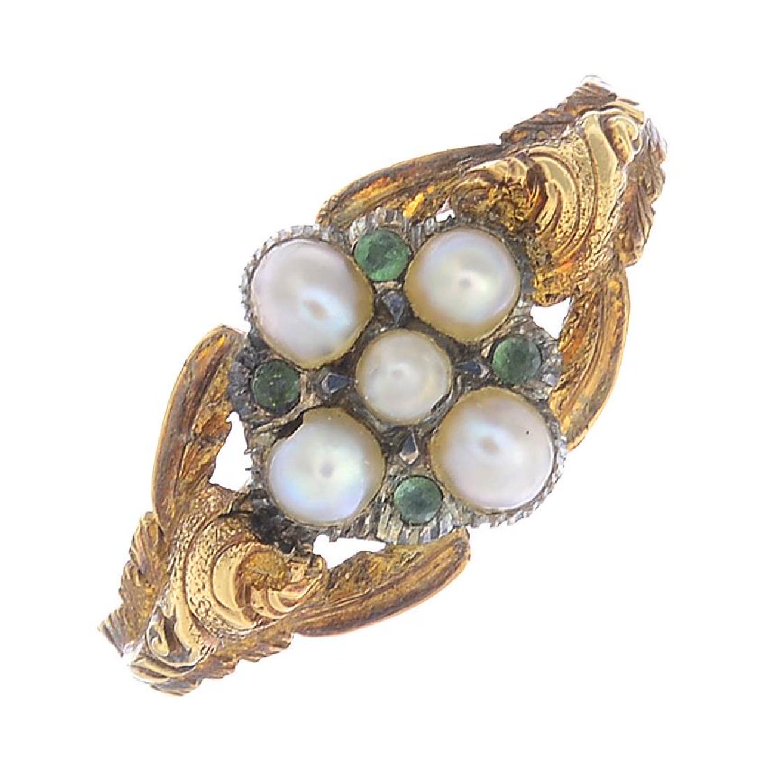 An antique 14 kt gold ring with alternating old-cut diamonds, emeralds and pearls in a multi-bandOstantix Auctions4.4(13)€4204 days Left