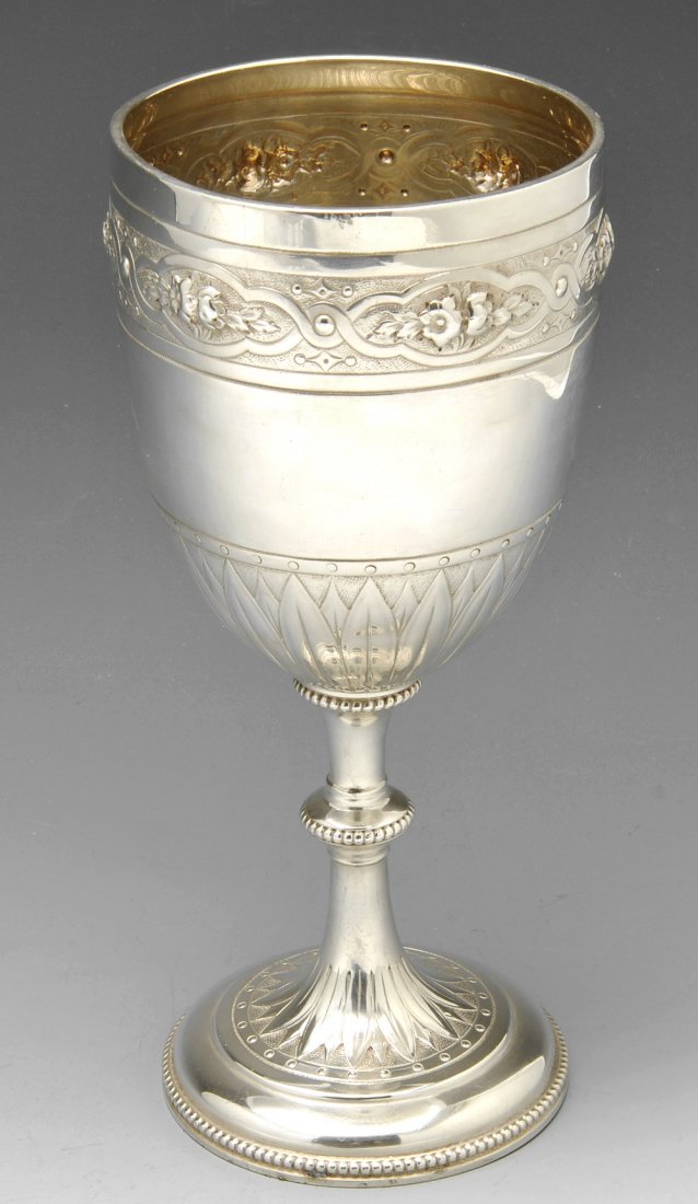 AN ORNATE SILVER KIDDUSH GOBLET. Probably the United States, c. 1920.Feb 18, 2026Rosenthal Arts and Crafts Style Silver Plate GobletFeb 10, 2026Fine English Regency Silver Goblet5 days LeftA LARGE SILVER KIDDUSH GOBLET. Poland, c. 1830. Exceptionally large for the style.Feb 18, 2026Solid American Coin Silver Goblet, Unmarked4 days LeftKwong Ching KC Chinese Export Silver Miniature Goblet c18805 days LeftGorham Sterling Silver Goblet H 6" 3.92 t oz 1 PCFeb 19, 2026Coin Silver Repousse Goblet, Mark of John L. WesterveltFeb 12, 2026Solid American Coin Silver Goblet Marked 25 Coin On Base4 days LeftAN EXCEPTIONALLY LARGE SILVER KIDDUSH GOBLET. Poland, c. 1840.Feb 18, 2026Chinese silver ewer trophy, 1870, ex HindmanFeb 19, 2026AN ANTIQUE RUSSIAN SILVER KIDDUSH GOBLET. C. 1880Feb 18, 2026A LARGE SILVER COVERED GOBLET. Germany, 19th century.Feb 18, 2026Vintage Engraved Brass Goblet / Kiddush CupFeb 12, 2026Mappin & Webb Sterling Silver Vase 1924 England 9in Reticulated Design3 days LeftA Gorham Sterling Silver Ecclesiastical Chalice 12 OztMar 07, 2026