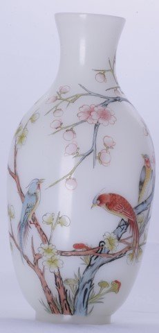 Vintage Gillinder Glass Milk Glass Flared Vase with Relief Birds & FoliageCOAUCTION 4.4(16)$1002 days Left
