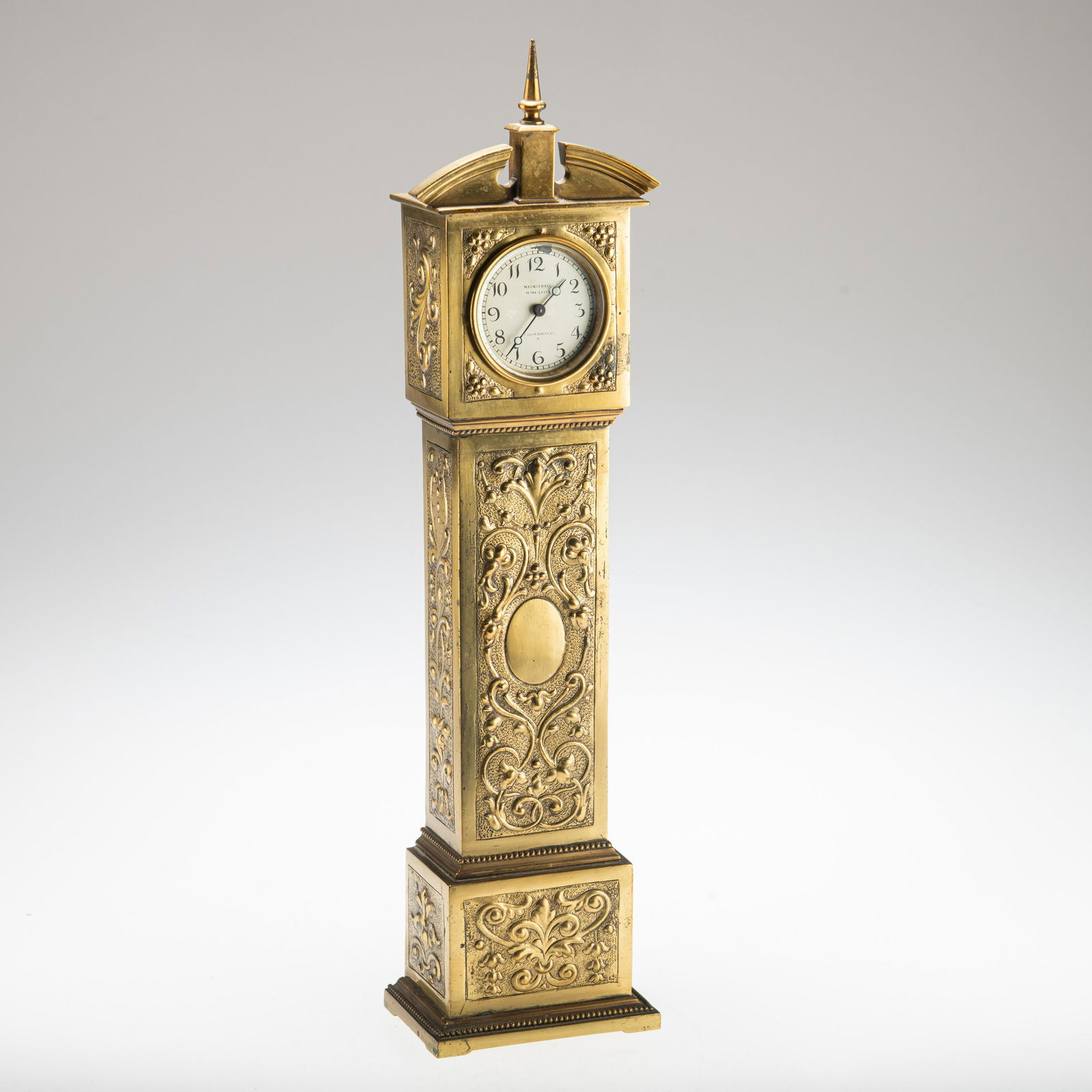 A Miniature Brass Longcase Clock