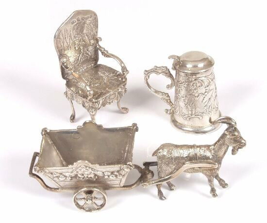 Large Group Lot of Unusual Silver MiniaturesFeb 18, 2026(17) COLLECTION OF STERLING, .800 SILVER & WEIGHTED STERLING TABLE ARTICLESFeb 22, 2026(4) CONTINENTAL SILVER MINIATURE FURNITURE & VIOLIN SHAPED BOXESFeb 22, 2026Sterling Silver Estate TablewaresFeb 24, 2026Collection of silver consisting of pepper and salt shakers, jugs, bell, bowl and statue of a boy,5 days LeftExquisite 3 Piece 1900 European Sterling Silver Mini Sedan Chairs Set2 days LeftGerman Hand Chased Angkor .900 Silver Tea Service SetFeb 26, 2026A silver cream jug and sugar basket with finely engraved continuous frieze of floral and geometric5 days LeftWilliam B. Heyer, New York, and Phillip Garrett, Philadelphia, Silver Teawares3 days LeftContinental Silver Nut / Candy DishesFeb 26, 20264 Sterling Repousse Table Articles including KirkFeb 26, 2026Kirk-Stieff and Various Pewter Tableware Group Including Tankard Cups Candlesticks and TrayFeb 19, 2026SET ELEVEN WEIGHTED STERLING SILVER INDIVIDUAL COCKLESHELL-AND-CHERUB, PEDESTAL BASE INDIVIDUAL3 days LeftA GEORGE IV SILVER BREAKFAST COFFEE SERVICE MARK OF JOHN CHARLES LOWE, LONDON, 1954Feb 19, 2026Reed & Barton, Etc. Silver Plate Tableware, 10 PcsMar 12, 20268 Sterling Silver Baby and Table ArticlesFeb 26, 2026