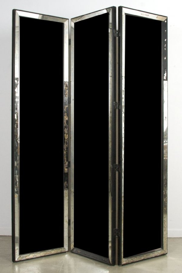 A Mirrored Three Panel Floor Screen, Height 67 3/4