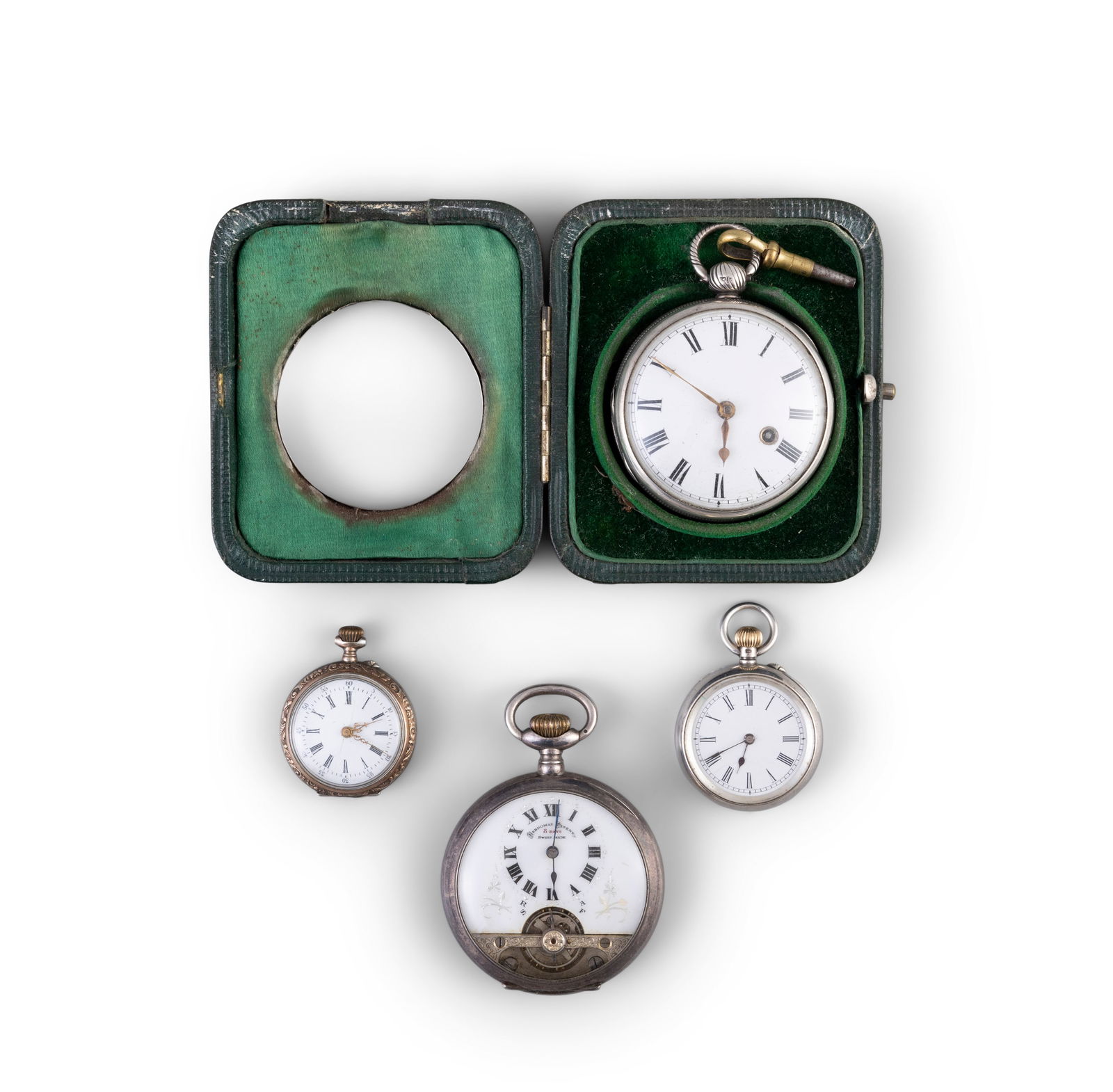 SWISS FANCY DIAL POCKET WATCHES, LOT OF FIVE20 hrs LeftSWISS AND OTHER POCKET WATCHES, LOT OF EIGHT20 hrs LeftINGRAHAM AND OTHER POCKET WATCHES AND STOPWATCH, LOT OF 1420 hrs LeftINGERSOLL AND WESTCLOX POCKET WATCHES AND RELATED ARTICLES, LOT OF 1120 hrs LeftA lot of eight white metal pocket watches (8) Various datesILLINOIS AND SOUTH BEND 19-JEWEL POCKET WATCHES, LOT OF THREE20 hrs LeftLot of Two Elgin 10K Gold Filled Pocket Watches with ChainsMar 17, 2026SWISS, AND POSSIBLY OTHER, LADY'S POCKET WATCHES, LOT OF SEVEN20 hrs LeftA lot of five gilt metal watches (5) Various datesCONTINENTAL 0.800 AND 0.875 SILVER-CASED POCKET WATCHES, LOT OF SIX20 hrs LeftSWISS, AND POSSIBLY OTHER, KEY-WIND POCKET WATCHES, LOT OF SEVEN20 hrs LeftSWISS, AND POSSIBLY OTHER, KEY-WIND POCKET WATCHES, LOT OF SIX20 hrs LeftSWISS, AND POSSIBLY OTHER, KEY-WIND POCKET WATCHES, LOT OF EIGHT20 hrs LeftWALTHAM 7-, 11-, AND 15-JEWEL POCKET WATCHES, LOT OF EIGHT20 hrs LeftSWISS 6-, 7-, AND 15-JEWEL POCKET WATCHES, LOT OF EIGHT20 hrs LeftAMERICAN 7-JEWEL, AND POSSIBLY OTHER, POCKET WATCHES, LOT OF NINE20 hrs Left