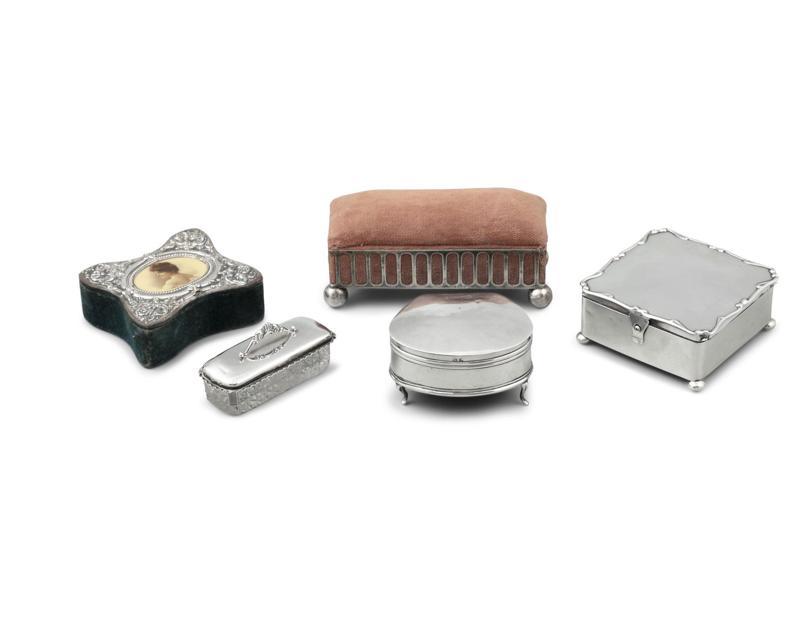 Lot - 2 Mahogany Jewelry Boxes, Poker Chips, Etc.3 days LeftLOT ANTIQUE BRONZE BOXES, VANITY ITEMS, ETCMar 07, 2026Onyx, Porcelain & Enamel Trinket Boxes 4pc LOT1 day LeftASSORTED SILVER-PLATED AND OTHER ARTICLES, LOT OF SEVENMar 04, 2026Lot of sterling silver dresser accessories, including various covered glass jars and scent bottles.4 days LeftGROUP LOT OF SILVER ITEMS8 hrs LeftLOT OF SILVERPLATE, MIRROR AND MORE2 days LeftMeriden, Imperial Silver & Others Assorted 9pc LOT1 day Left8 pc Lot Victorian Silverplate Shaker Castor Frames & More3 days Left19th/20th Century Women's Vanity Make-up Sterling Silver Lot (6)Mar 28, 2026Silver Cigarette Cases8 hrs LeftVarious Items8 hrs LeftSilver Items, Russia8 hrs LeftSilver Boxes, Various Origins8 hrs LeftSilver Items, Various Origins8 hrs LeftAntique lap desk, Chinese lacquer jewelry box, and more boxes1 day Left