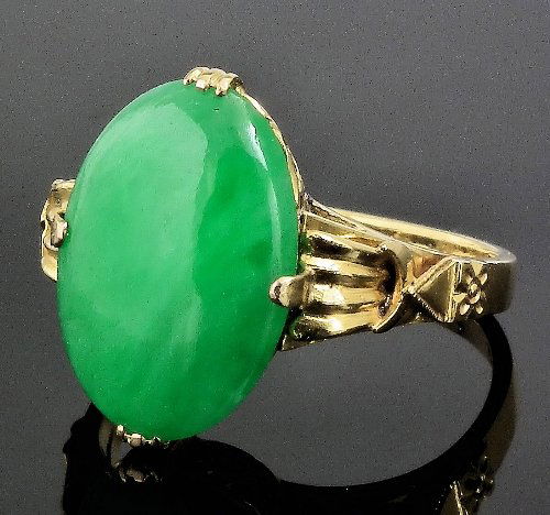 A Modern 18k Mounted Jade/jadeite Set Ring, The Ova