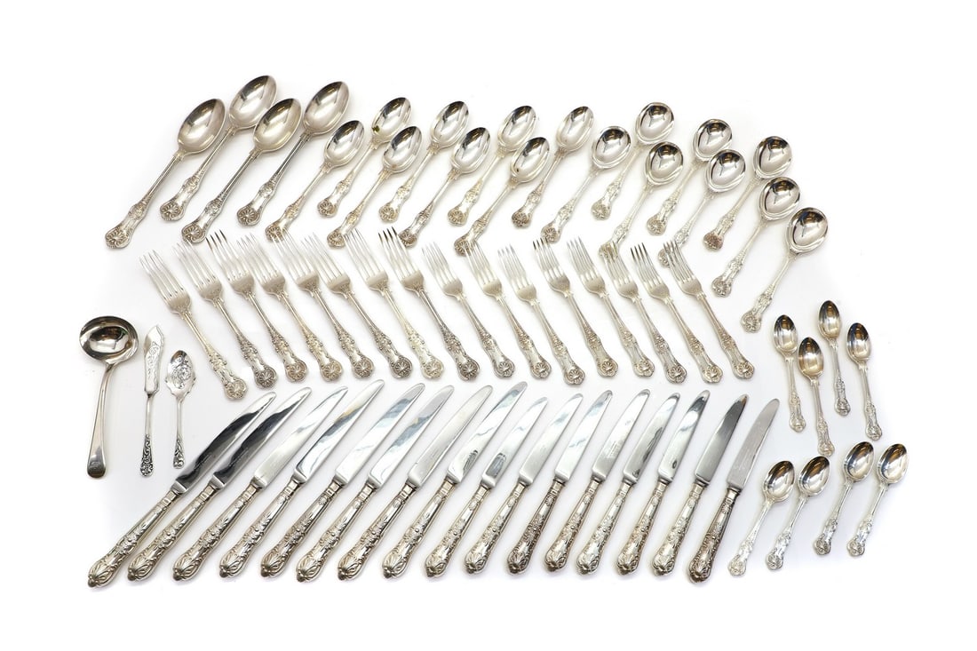 Lot of silver utensils. To include: continental lion handle spoon, shaped bowl serving spoon,6 days LeftSTIEFF AND OTHER STERLING AND COIN SILVER FLATWARE AND SERVING UTENSILS, LOT OF EIGHTMar 04, 2026Large lot of sterling silver and silver handled utensils. To include: Durgin serving fork and spoon6 days Left800 silver cutlery set3 days LeftInternational Prelude Sterling Flatware, 88 Pieces, Jimmy Carter Provenance2 days LeftAmerican Sterling Silver Flatware ServiceMar 15, 2026Stieff Sterling "Puritan" Flatware Service3 days Left(78) PIECE REED & BARTON STERLING FLATWARE SERVICEMar 05, 2026International Sterling "Angelique" Flatware Service3 days LeftAmerican Sterling Flatware Service3 days LeftGorham Sterling "Camellia" Flatware Service3 days LeftInternational Silver Co. Sterling Silver "Royal Danish" Pattern Flatware Service2 days Left58 pc GORHAM ROSETTE PATTERN SILVER FLATWARE,2540g2 days Left61 pc WALLACE CARMEL PATTERN SILVER FLATWARE,1530g2 days LeftTowle Louis XIV Sterling Flatware Service3 days LeftAmerican Silver Flatware Service & Similar PiecesMar 13, 2026