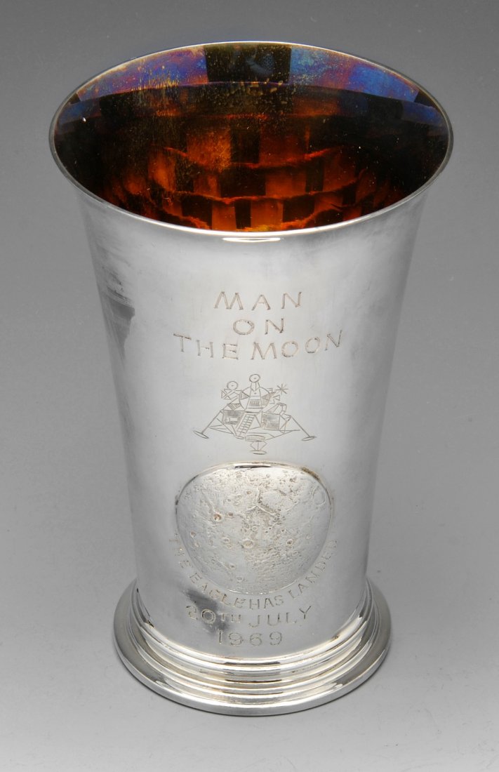 A modern commemorative silver beaker.