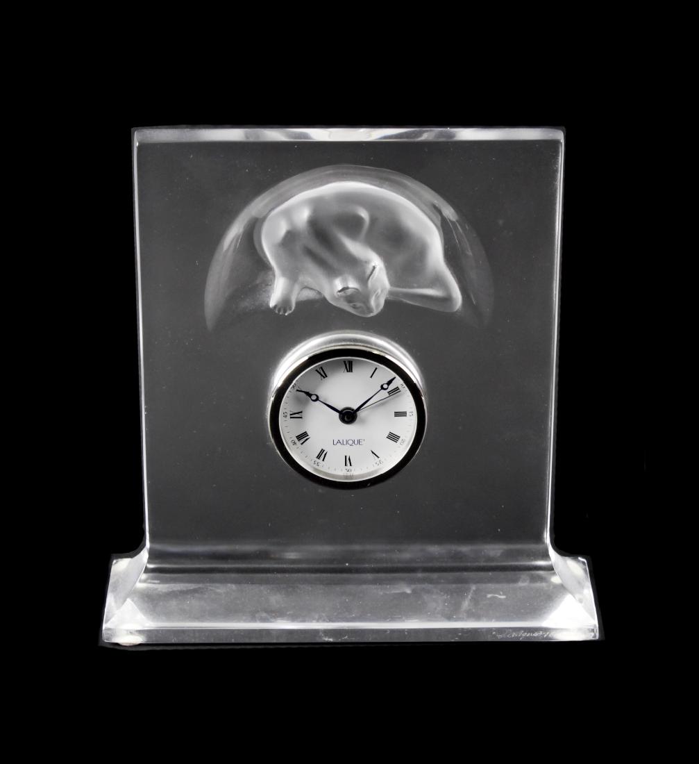 A modern Lalique mantel clock. Of rectangular form,