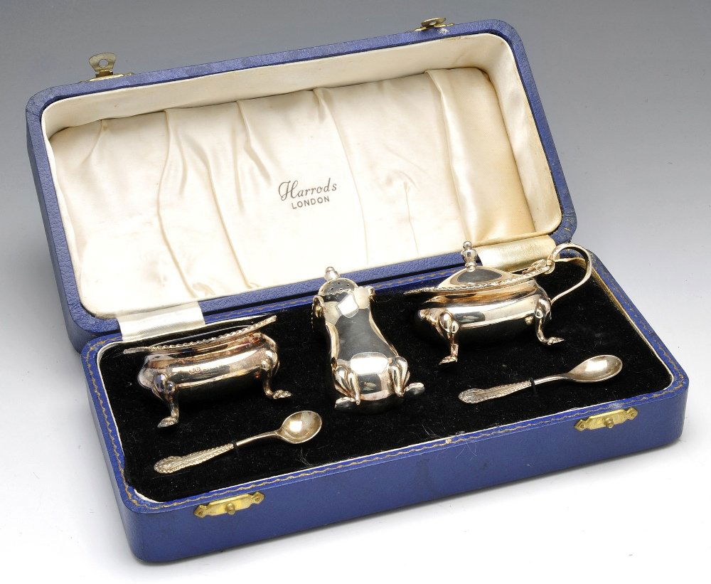 Lot of Four Silverplated Cup HoldersFeb 16, 2026A composed lot of six various silver and glass tableware objectsFeb 24, 2026A composed lot of eight various antique French silver-plated CHRISTOFLE cutlery setsFeb 24, 2026Collection of silver consisting of pepper and salt shakers, jugs, bell, bowl and statue of a boy,Feb 15, 2026A CASED SET OF CHINESE SILVER BLADED MOTHER OF PEARL WAIKEE CUTLERY. Each fork 360 grams overall, knFeb 12, 2026Towle Legato Sterling Silver Flatware Set for 8 - 36 Pieces with Storage ChestFeb 04, 2026Six D. Andersen Norway Sterling Demitasse SpoonsFeb 17, 2026Y A CASED SILVER BACHELOR'S TRAVELLING FOUR PIECE TEA AND COFFEE SETFeb 17, 2026Knowles Roman Sterling Silver Flatware Set for 8 with Storage Chest 32 Pieces7 days LeftReed & Barton English Crown Silverplate Flatware Set 127 Pieces for 246 days LeftWWII TYPE NAZI GERMAN TEASPOONS F OFFICERS CANTEENFeb 14, 2026SILVER. Finest Quality English Silver Christening4 days LeftMappin & Webb Sterling Silver Open Salts, Pepper Casters And A Mustard Pot On .800 Silver Tray (917 hrs LeftAN ENGLISH SILVER & CRYSTAL TRAVELING TOILETRY SET, 1914Feb 15, 2026International "Enchantress" Sterling Silver Flatware SetJul 24, 2025SILVER. Cased English Silver Christening Set.4 days Left