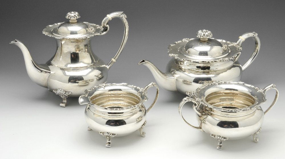 A modern silver four piece tea service.