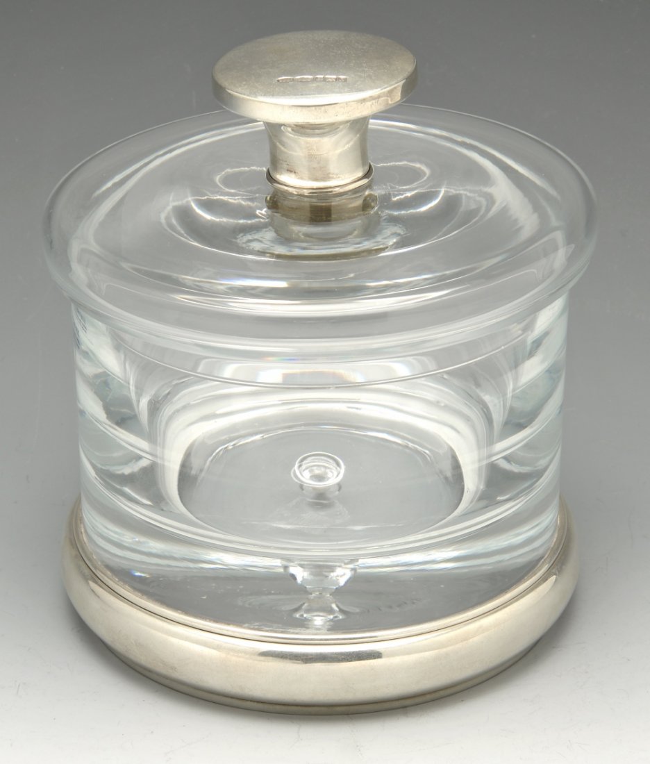 A silver-mounted spherical glass vase Asprey, London 2009, also stamped Asprey LONDONFine Heavy Cut Crystal Drinks DecanterUnger Floral Sterling Silver and Cut Crystal Powder Jar 3 1/4" Tall6 days LeftWaterford Crystal Cut Glass Honey Pot or Jam Jar with Lid and Original Box2 days LeftSteuben sterling silver lidded glass jar. Hobnail and tendril design. Mechanical hinged opening.Mar 01, 2026A silver-mounted glass cocktail shaker maker's mark W&P, in a vertical lozenge punch, Birmingham...Sterling Top Glass Powder Jar3 days LeftBaccarat Crystal "Harcourt Missouri" Covered JarApr 14, 2026A MATCHED PAIR OF SILVER MOUNTED DECANTERS OR MEDICINE BOTTLES4 days LeftBaccarat Crystal Harcourt Mustard Jar W/ SpoonMar 03, 2026Rogaska Crystal Hamilton Marmalade JarFeb 22, 2026Vintage Inkwell / Desk Accessory with Inset ClockMar 02, 2026Kirk Old Maryland Plain Sterling Silver Glass Jelly Jar Spoon Set21 hrs LeftSigned Hawkes Sterling Stopper Verre de Soie Iridescent Perfume Bottle3 days LeftAntique Cut Glass Vanity Jar with Sterling Silver Lid2 days LeftSterling silver accessories. 1) English sterling silver tray and inkwell. 9in wide. Tray: 6.7 ozt.Mar 01, 2026