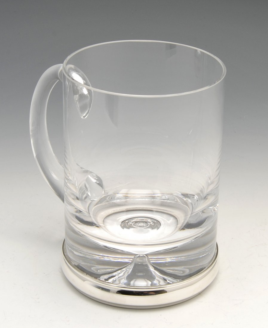 A modern silver mounted glass mug.