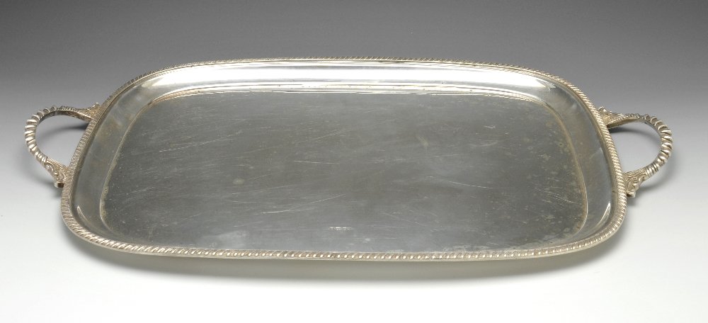 A modern twin-handled silver tray.