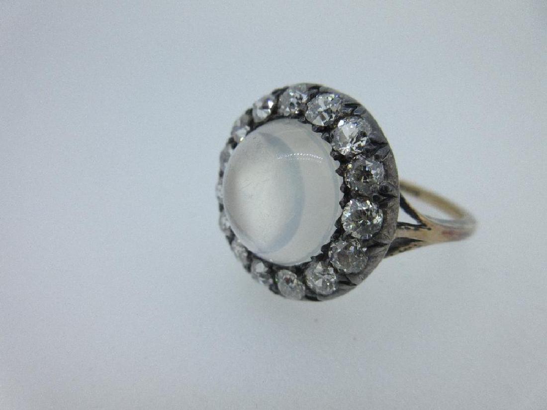 A moonstone and diamond cluster ring,