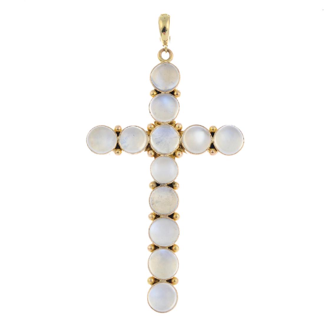 A moonstone cross pendant. Designed as a circular