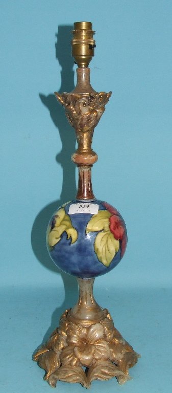 A Moorcroft pottery Hibiscus pattern table lamp, 41 cm