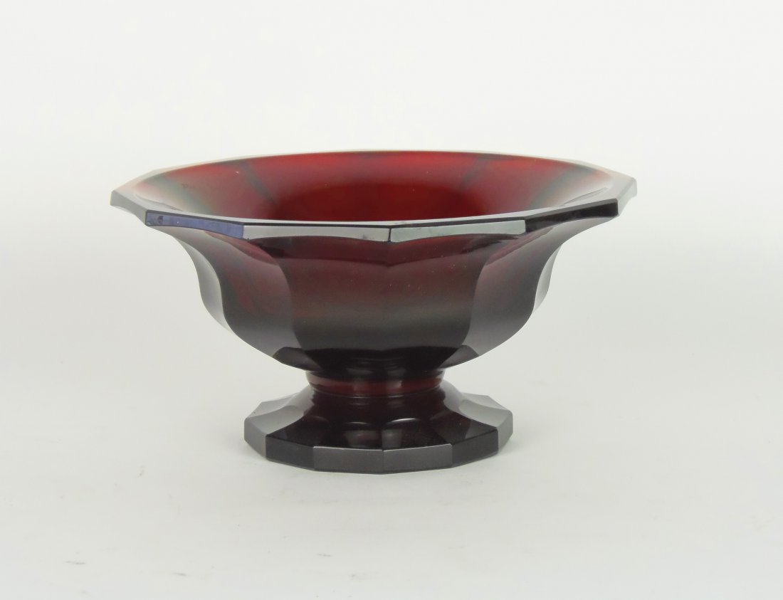A Moser-type ruby glass comport, Austrian, circa 1930 1