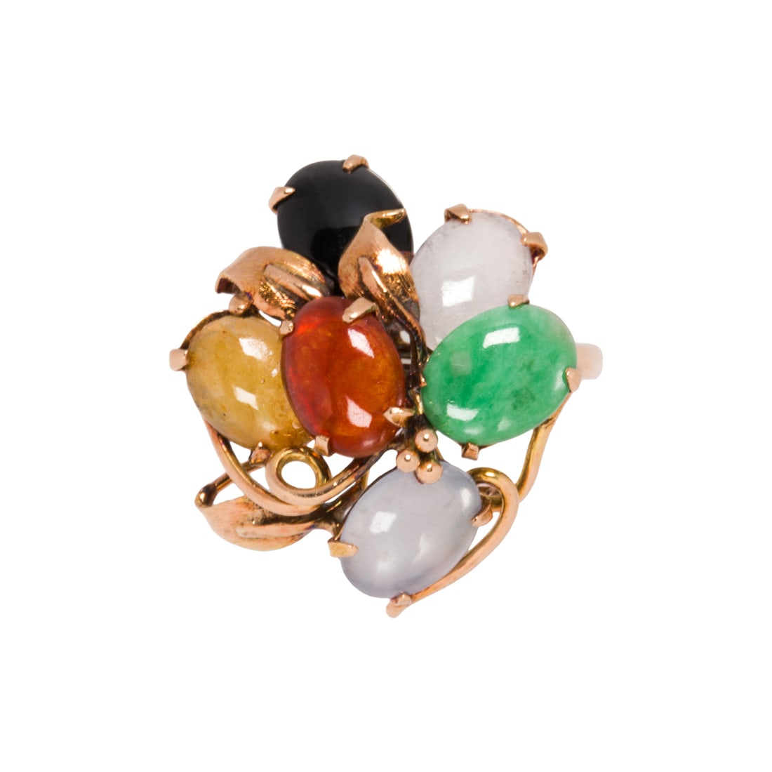 A multicolor jade and 14k gold ring