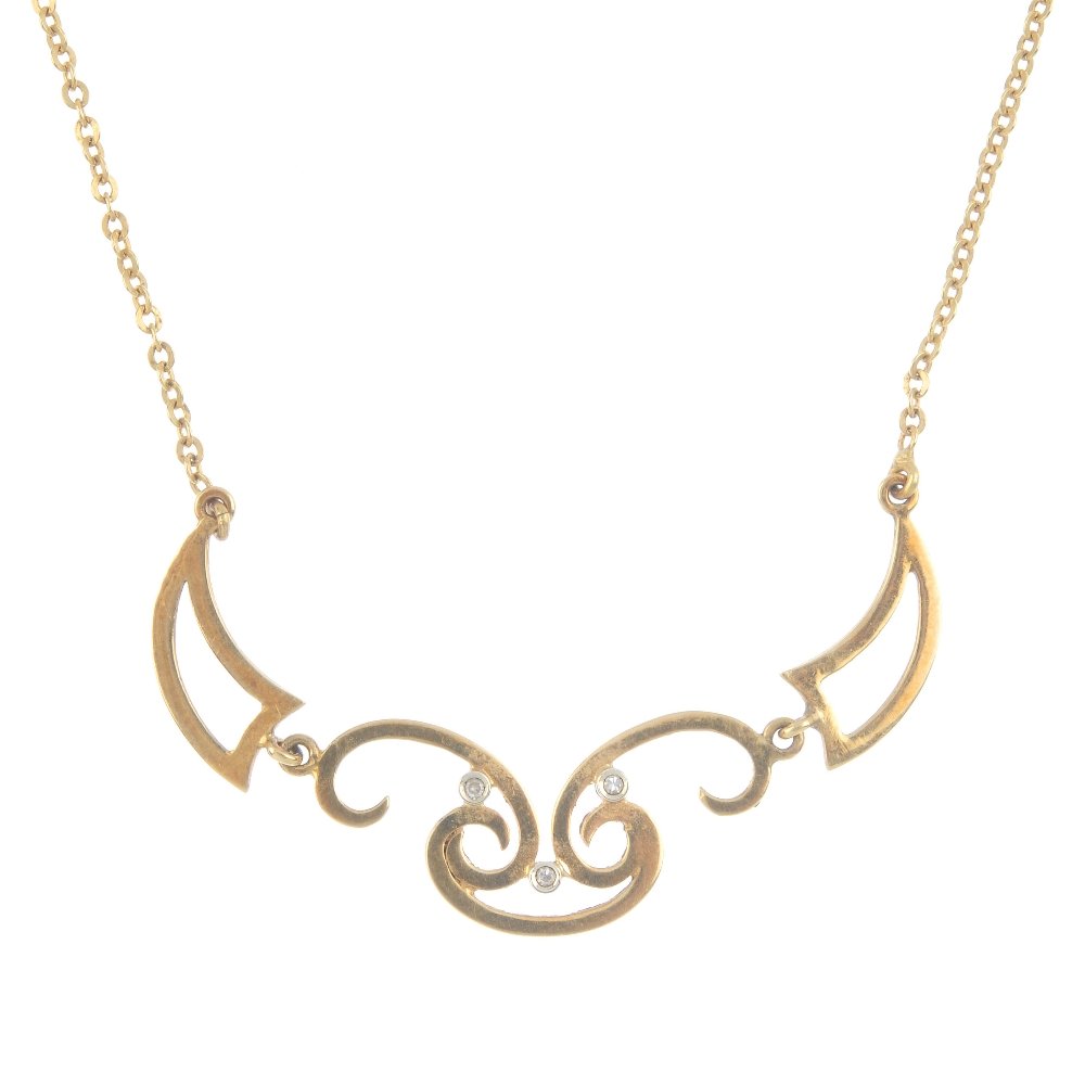 A necklace. Comprising three single-cut diamond