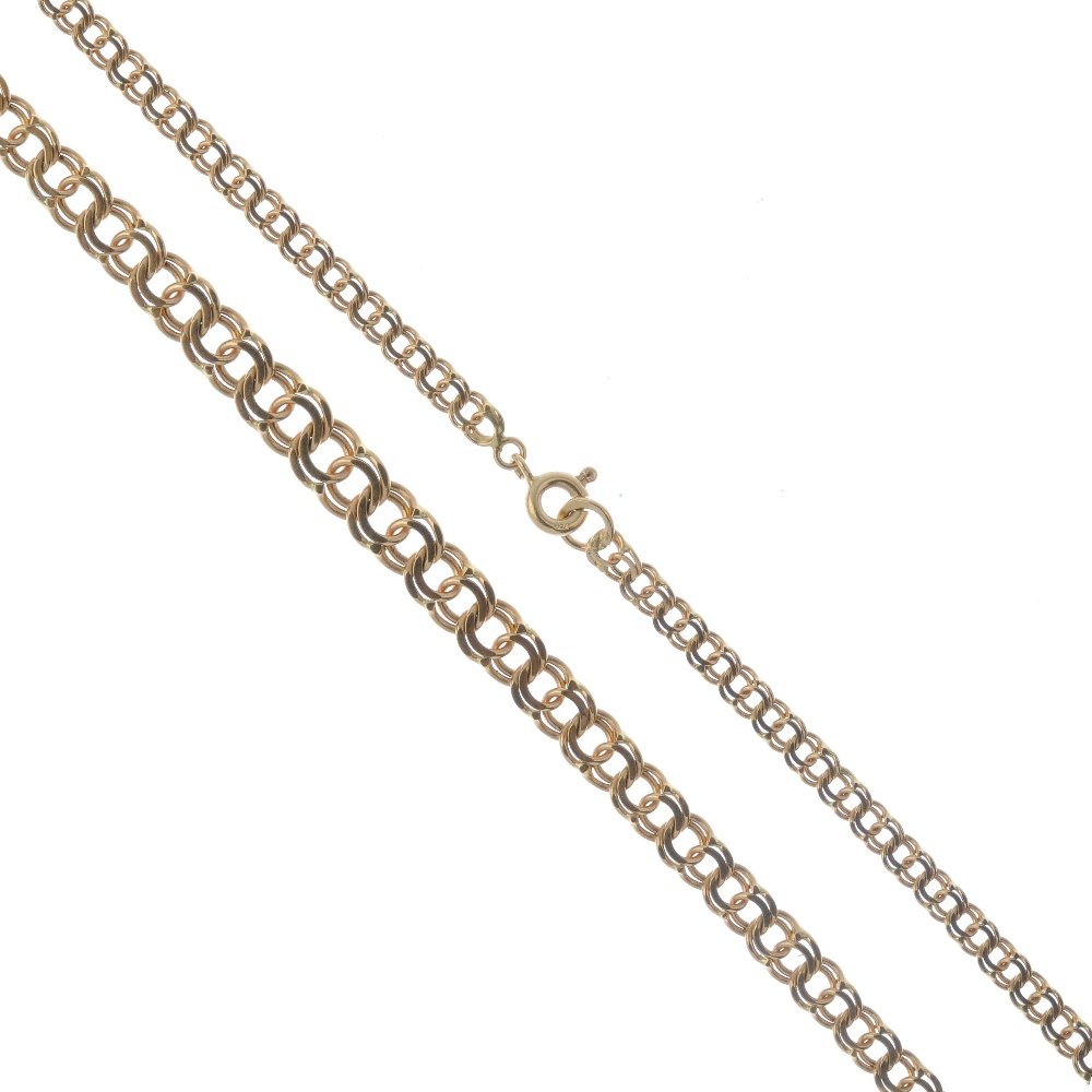 A necklace. Designed as a flat double curb-link chain,