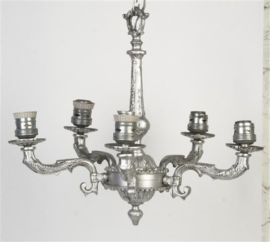 A Neoclassical Silvered Metal Five-Light Fixture,