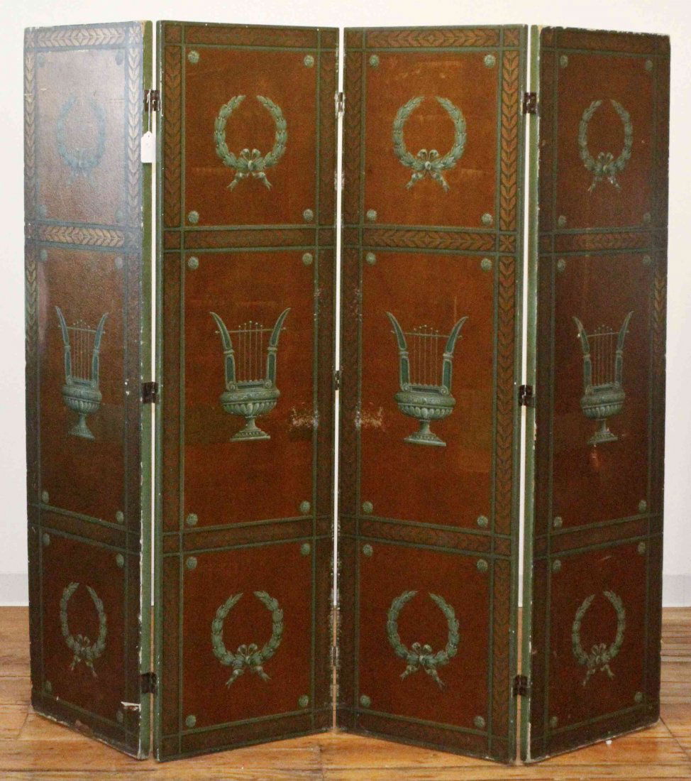 A Neoclassical Style Painted Four-Panel Floor Screen,