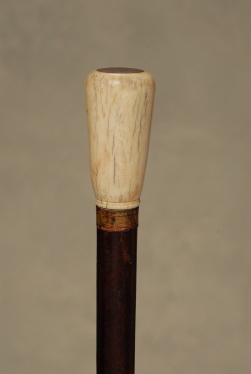 A nice polished bone knob cane with ebony inlay