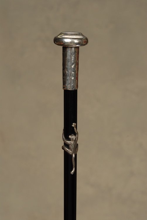 A nice silver knob cane with a climbing monkey