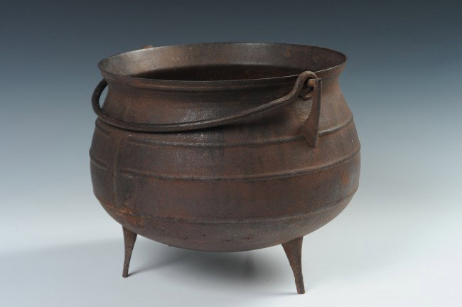 A NICE TALL FOOTED IRON KETTLE