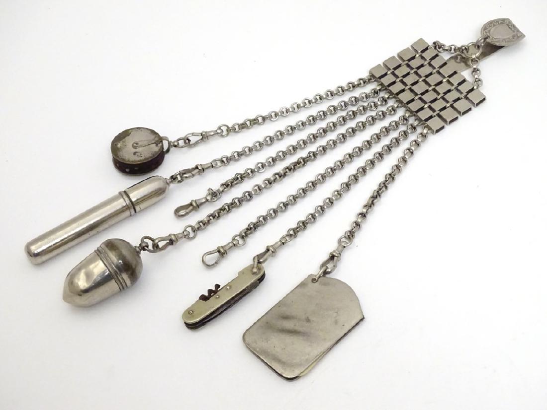 A nickel and silver plate Chatelaine with various items