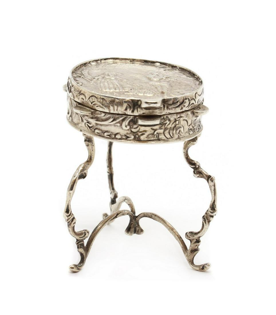 BOIN TABURET FRENCH ANTIQUE 950 STERLING SILVER "CENTRE DE TABLE" JARDINAIRESilver Relief Square Lidded Jar with Figure Story Pattern3 days Left19th Century Repousse Centerpiece Pedestal BowlMar 28, 2026VICTORIAN ERA SILVER PLATE REVOLVING BUTTER CENTERPIECE2 days LeftAntique Continental Silver Cherub & Insect .863 Fine Silver Trinket BoxFeb 28, 2026Handmade 925 Sterling Silver Leaf Applique Honey Dish Tray Spoon SetMar 04, 2026Italian 925 Sterling Silver Floral Leaf Chased Spice Besamim BoxFeb 28, 2026Chinese silversmith. Lidded jar richly decorated in relief with flowers and ornaments.George II Sterling Silver Small Salver5 days LeftHandmade 925 Sterling Silver Floral Snuff Spice Box BP-1439Feb 27, 2026Cartier Sterling Silver Drum Jar with Glass Liner 195020 hrs LeftVictorian Silver-plated Motif Table GarnitureMar 05, 2026Mid 18th Century Antique George III Silver Tea Caddy London 1763 John Parker & Edward WakelinHandmade 925 Sterling Silver Leaf Applique Honey Dish & TrayFeb 27, 2026Handcrafted Italian Sterling Silver Ornate Floral Swirl Snuff Spice BoxMar 03, 2026TIFFANY & CO STERLING CENTERPIECE, 43 T.O.W.Mar 07, 2026