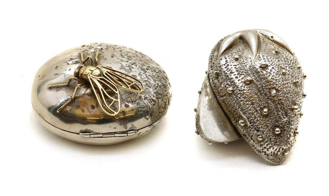 A collection of seven variously shaped and decorated silver pill and snuff boxesOstantix Auctions4.4(13)€1507 hrs Left