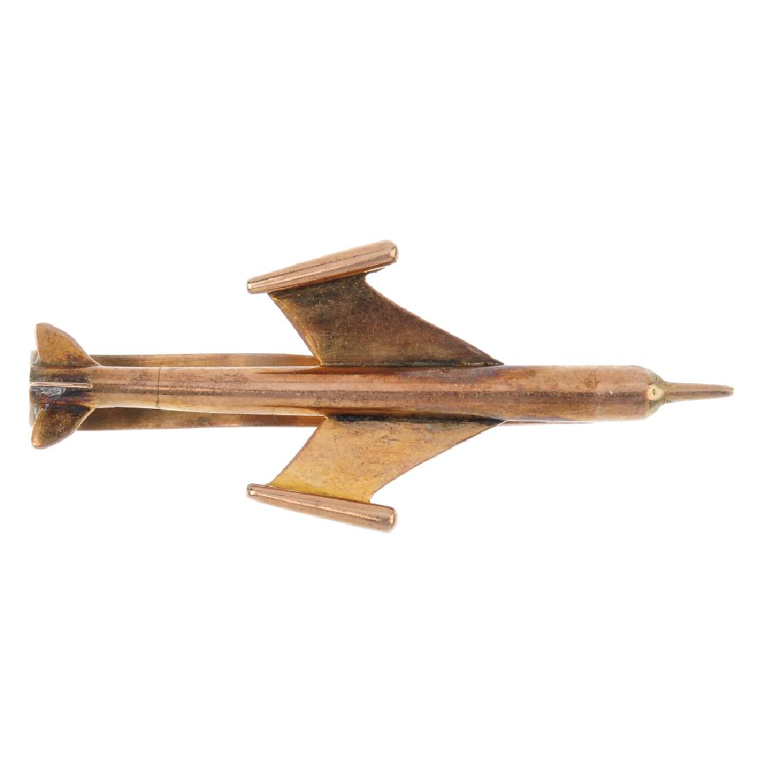 A novelty tie slide. Designed as a stylised rocket,