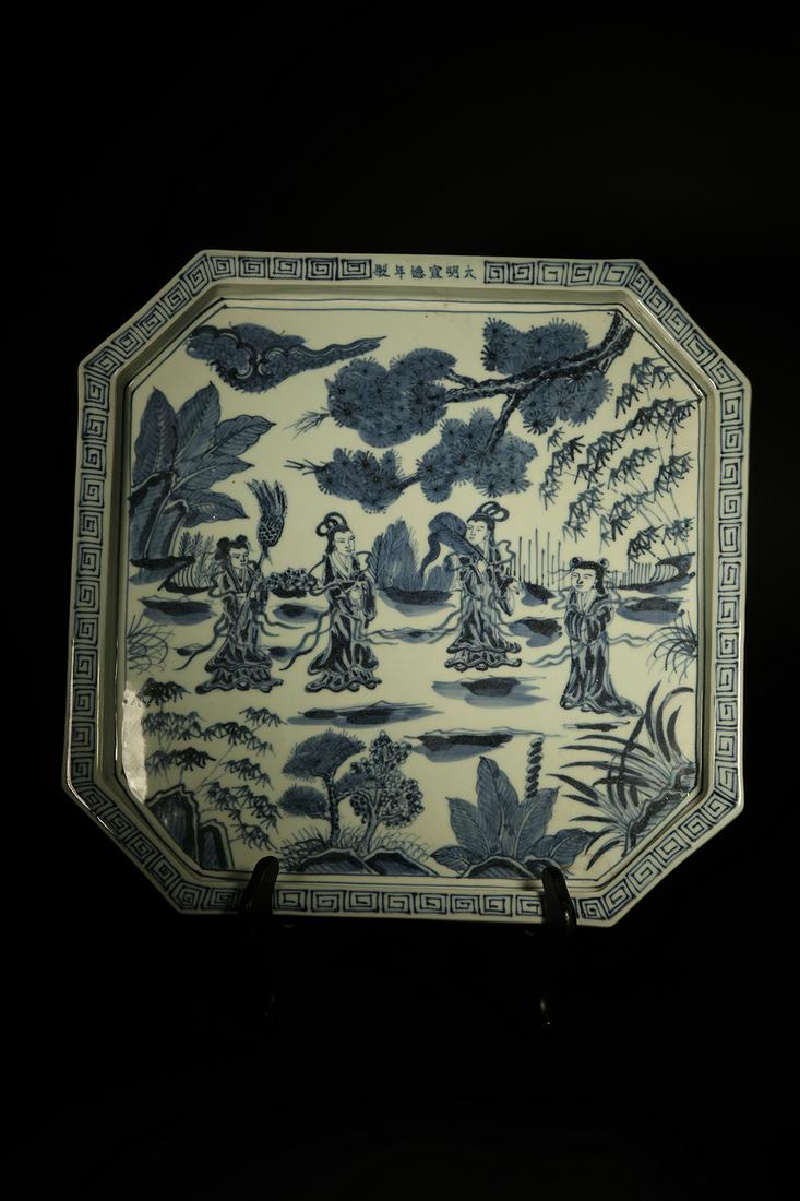A OCTAGON SHAPED PORCELAIN PLATE