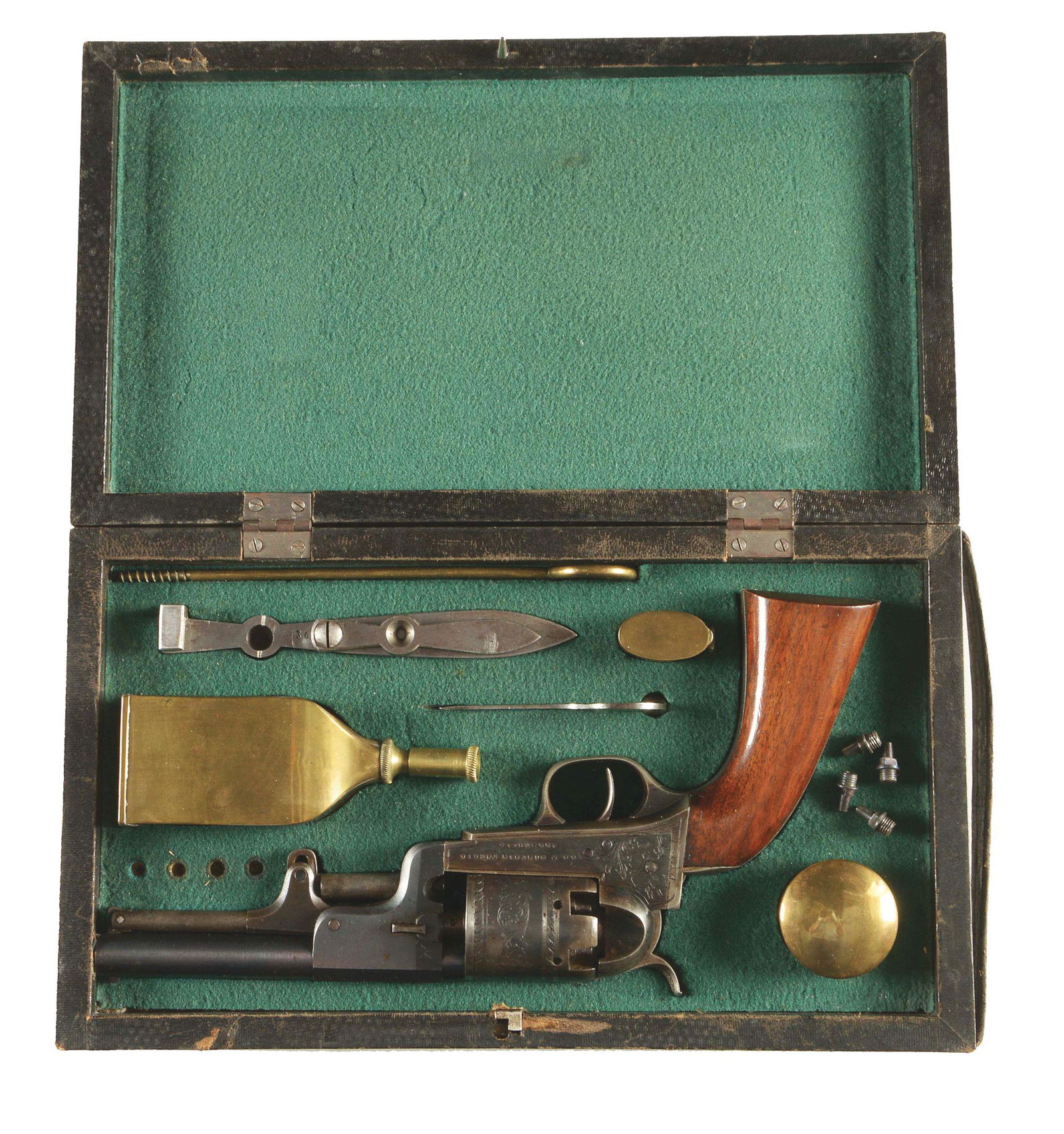Group Lot: Flare Pistol, Leather Cartridge Pouch, and .38 Caliber RevolverMar 07, 2026Colt Model 1860 Army .44 cal. RevolverMar 28, 2026VAMPIRE HUNTING KIT W/ SxS PERC PISTOL.Mar 01, 2026CUSTOM CASED & ENGRAVED REMINGTON NEW MODEL ARMYMar 01, 2026(A) CASED MATCH SET OF SWISS J. GILLI PERCUSSION SINGLE SHOT TARGET PISTOLS.Mar 03, 2026EARLY FINE FLUTED COLT MODEL 1860 ARMY REVOLVER.Mar 01, 2026J. WILLIAMS MATCHED PAIR OF BRITISH BELT PISTOLS.Mar 01, 2026Cased Wogdon & Barton Flintlick PistolsMar 28, 2026Identified Set of Mortimer Flintlock PistolsMar 28, 2026Cased Set of Aston Flintlock Dueling PistolsMar 28, 2026ALEXANDER HAMILTON FLINTLOCK DUELING PISTOLSMar 28, 2026Identified Set of Black Watch PistolsMar 28, 2026CASED COLT MODEL "7" 1855 ROOT REVOLVER.Mar 01, 2026FINE PR GASTINNE RENETTE PERCUSSION BREECHLOADINGFeb 27, 2026Professor Bloomberg's Vampire Killing Kit.Feb 28, 2026Vampire Killing Kit J Bowarrier Pistol, Silver Knife, Cross, Wood Stakes, Bible, Containers forFeb 28, 2026