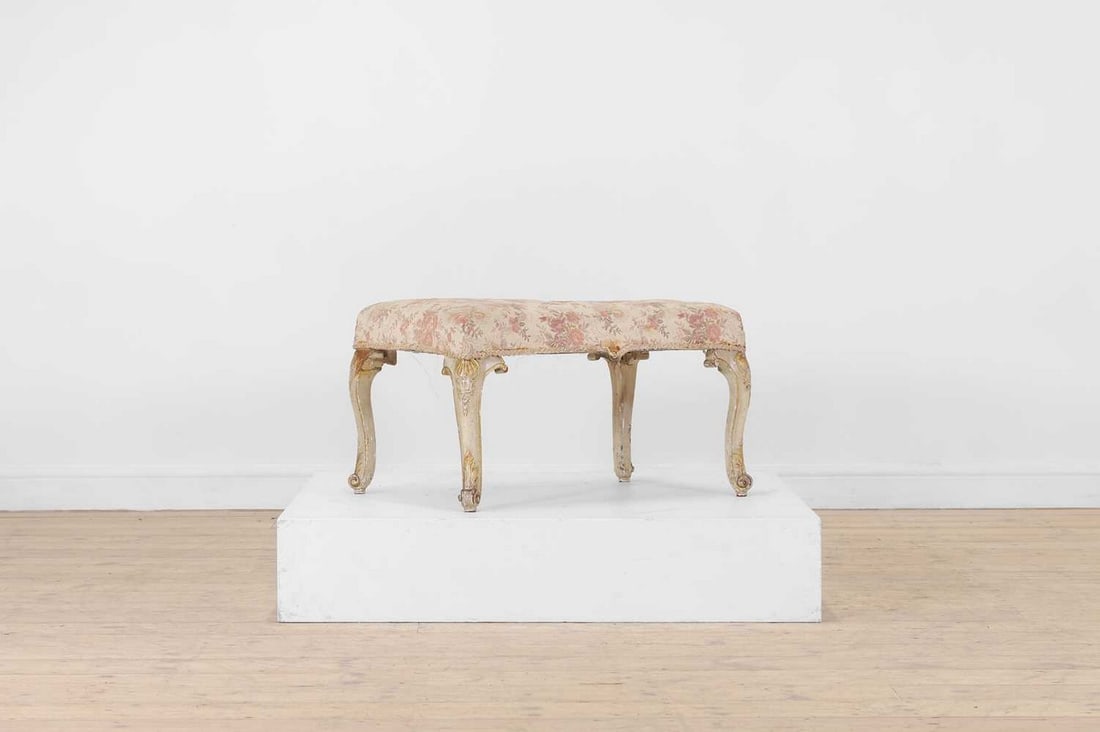 A painted and parcel-gilt stool,