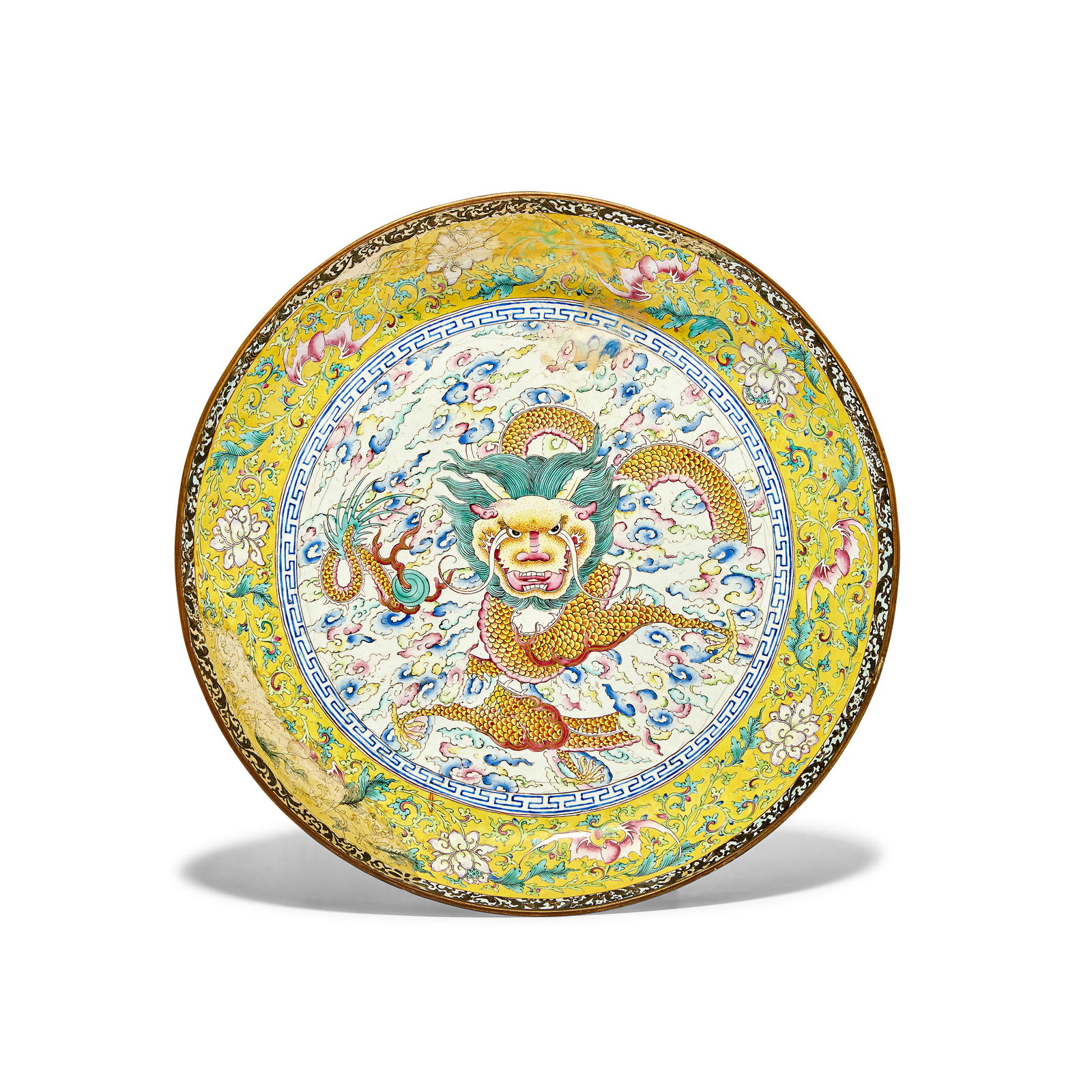 A PAINTED ENAMEL 'DRAGON' DISH Qianlong
