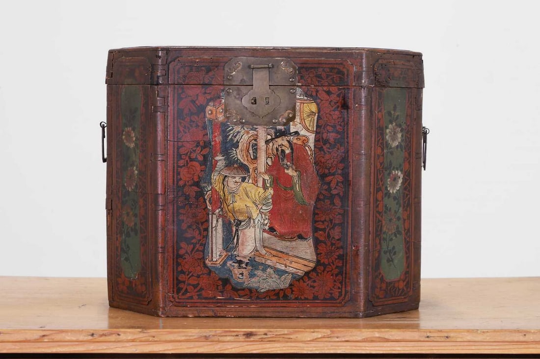 Chinese vintage painted wood storage box