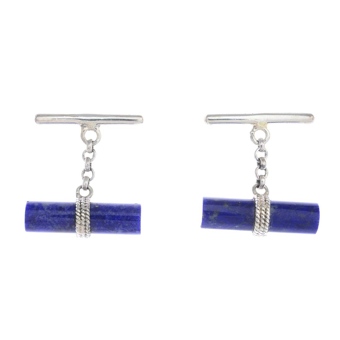 A pair lapis lazuli cufflinks. Each designed as a lapis