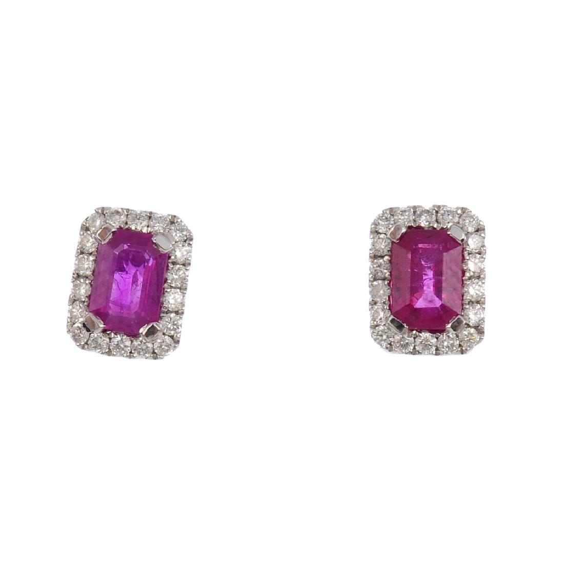 A pair of 18ct gold ruby and diamond cluster stud