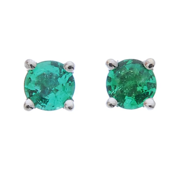 A pair of circular-shape emerald single-stone ear
