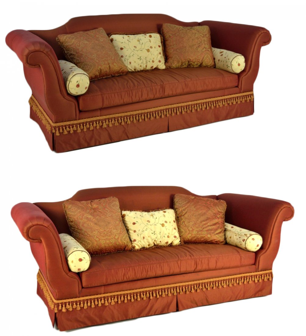 A PAIR OF CUSTOM SILK SOFAS BY VANGUARD