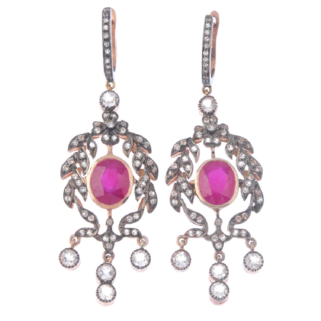 A PAIR OF RUBY AND DIAMOND EARRINGS