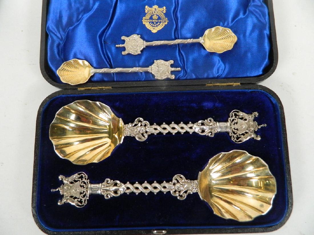 A pair of Hallmarked silver serving spoons with shell