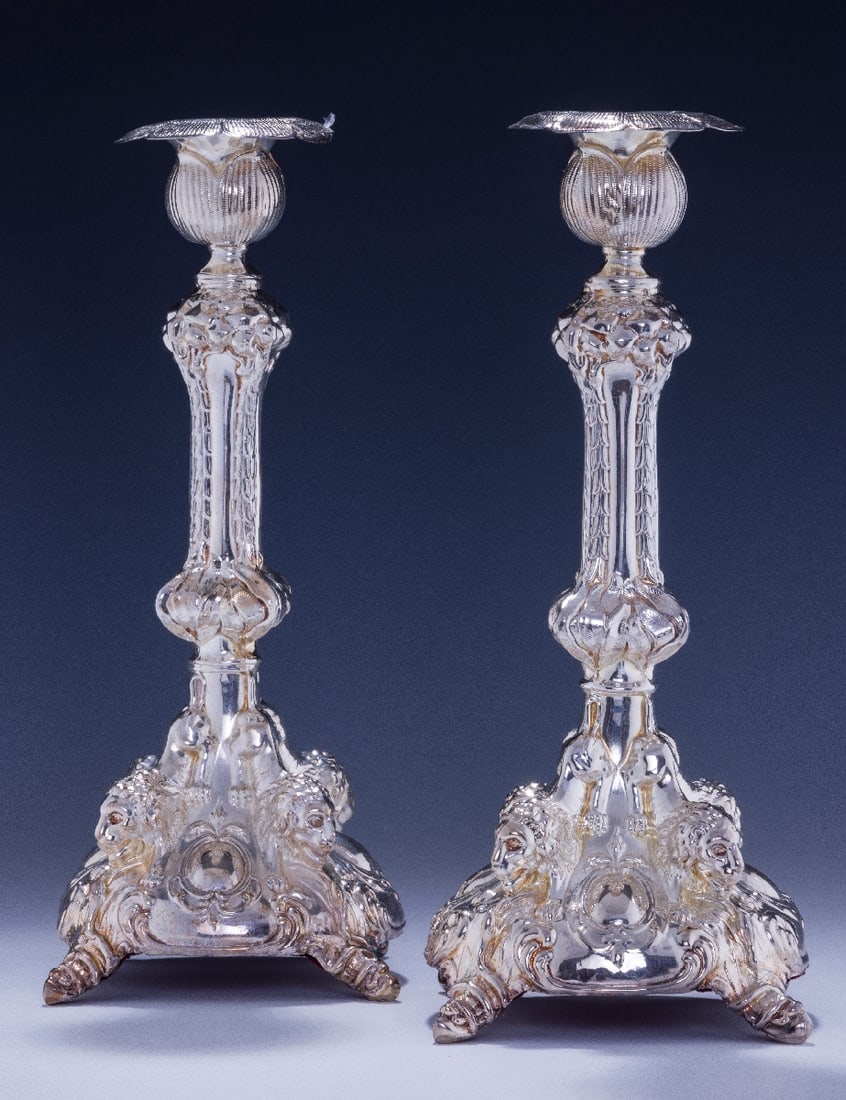 A PAIR OF LARGE SABBATH CANDLESTICKS.
