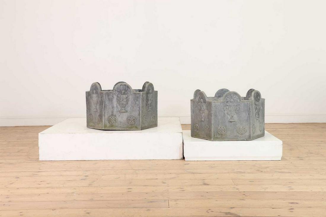 A pair of lead octagonal planters,