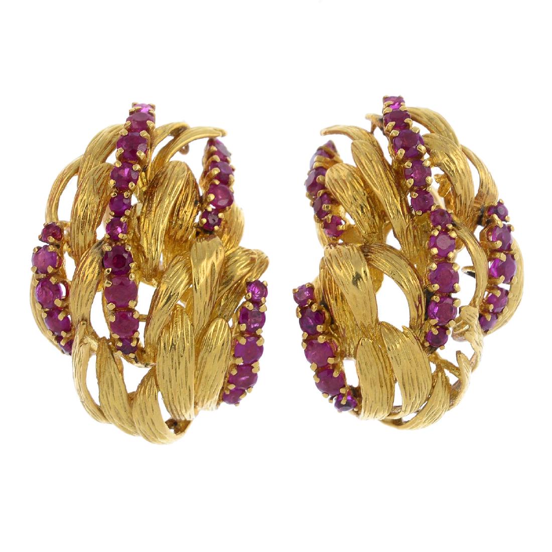 A pair of mid 20th century ruby earrings. Each designed
