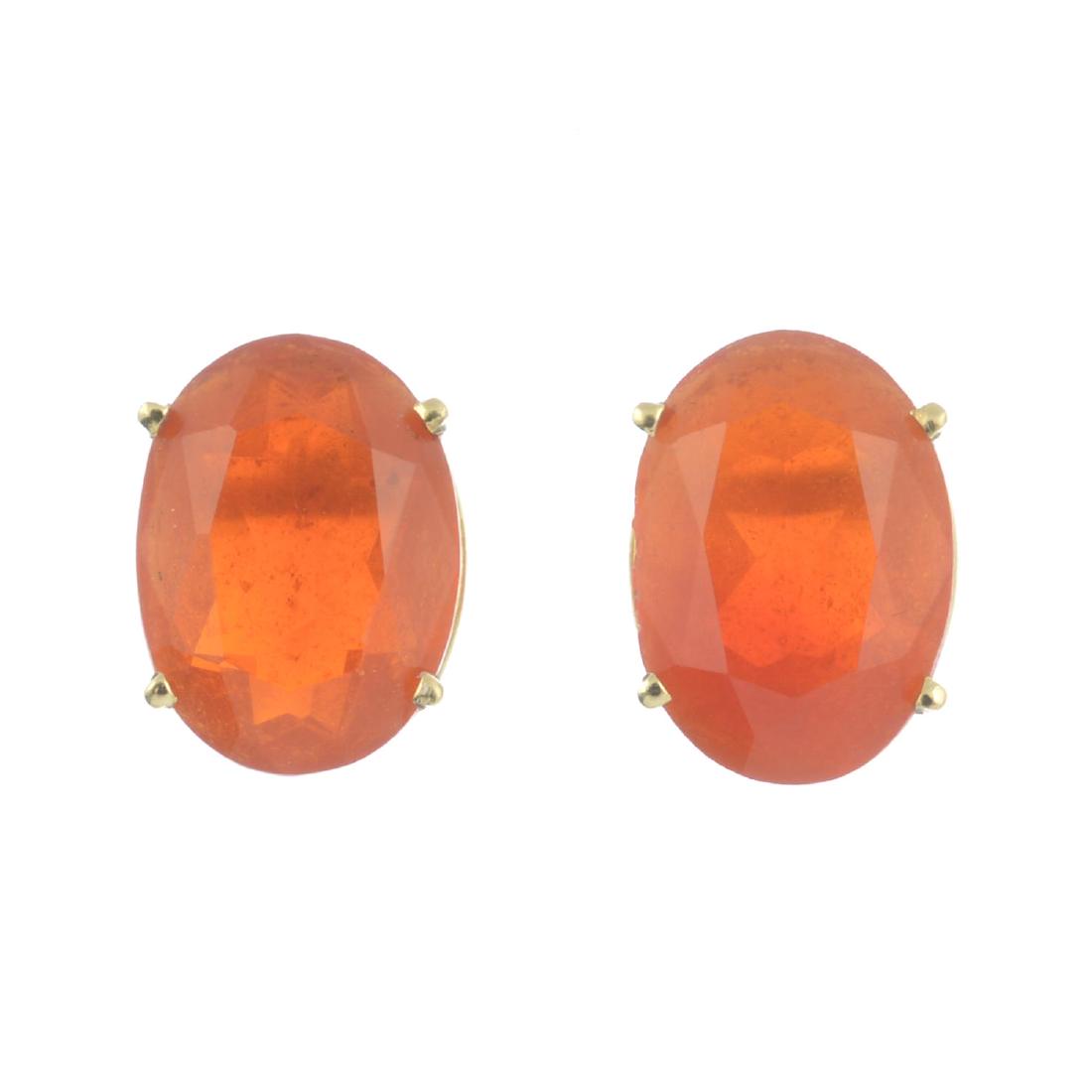 A pair of oval-shape fire opal single-stone stud
