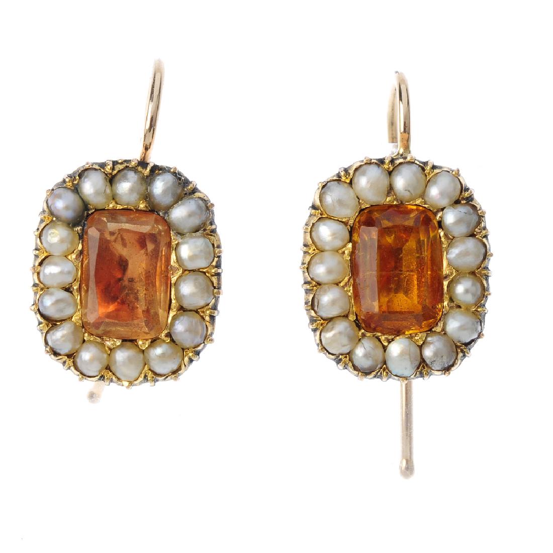 A pair of paste and split pearl earrings. Each designed