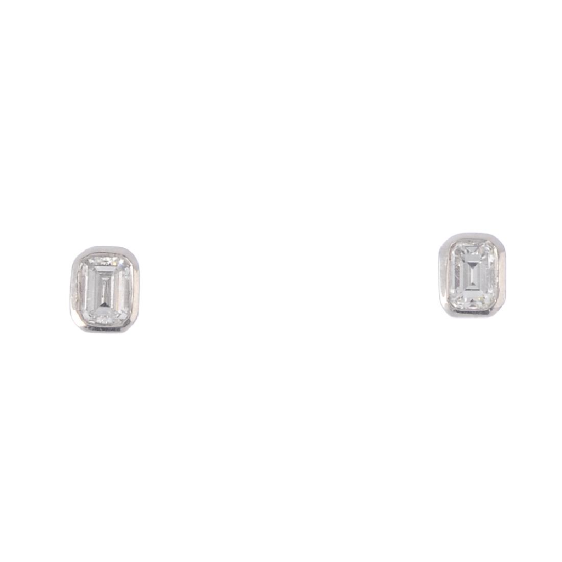 A pair of rectangular-shape diamond single-stone stud